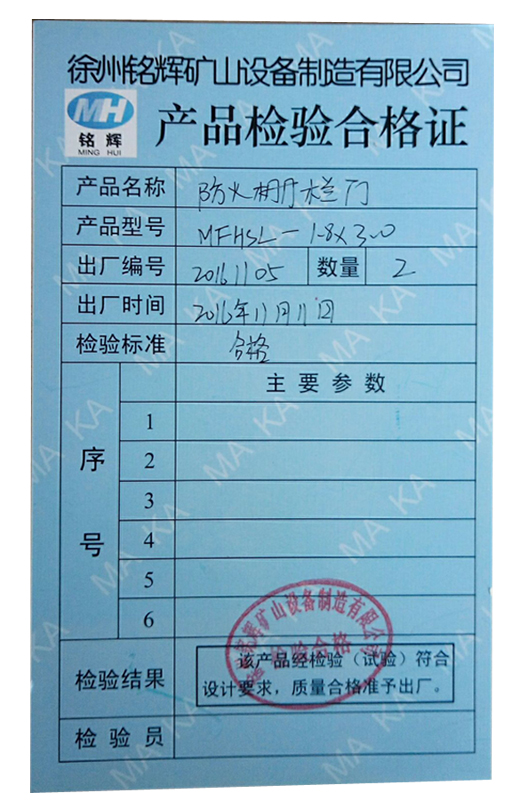 本防火及柵欄兩用門(mén)為煤炭工業(yè)部武漢煤礦設計研究院設計,產(chǎn)品質(zhì)量標準和檢測標準嚴格執行Q/WMS-3011-2005《防火及柵欄兩用門(mén)》。